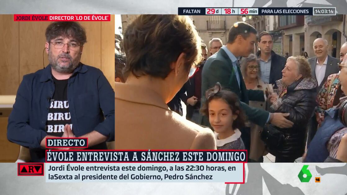 Precisamente sobre esta cuestión ha tratado el periodista Jordi Évole en su enntrevista al presidente del Gobierno, que se emitirá el domingo en laSexta. "Le he visto muy dolido con esa vinculación quehacen con el apoyo de Bildu para sacar adelante algunas leyes y Sánchez, PSOE, ETA", ha indicado.