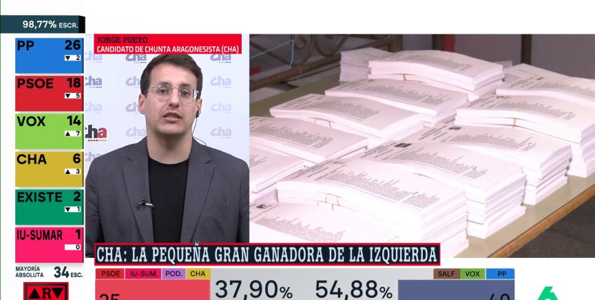 Jorge Pueyo, candidato de Chunta Aragonesista, ha expresado su satisfacción con los resultados de su partido en las elecciones, donde obtuvieron seis escaños, convirtiéndose en el único partido regionalista de izquierdas en ganar. Sin embargo, siente un sabor "agridulce" al ver que Vox ha duplicado su representación, alcanzando 14 escaños. Pueyo critica al Partido Popular por ser el "caballo de Troya" de la extrema derecha, sugiriendo que priorizan intereses partidistas sobre los aragoneses. Además, considera que el crecimiento de Vox responde a un voto contestatario contra el Gobierno de Pedro Sánchez, y critica al PSOE por no abordar temas esenciales como la vivienda y el transporte en Aragón.