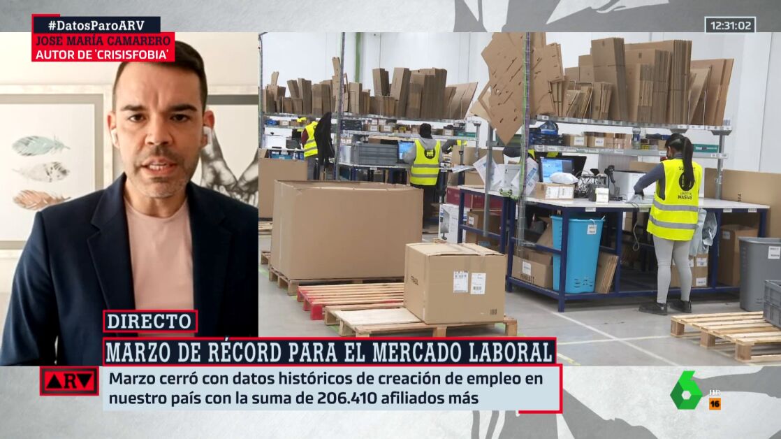 El periodista económico José María Camarero ha participado en el programa 'Al Rojo Vivo', donde ha comentado los últimos datos del desempleo en España. Marzo cerró con la creación histórica de 206.410 empleos y el paro se redujo en 48.755 personas.