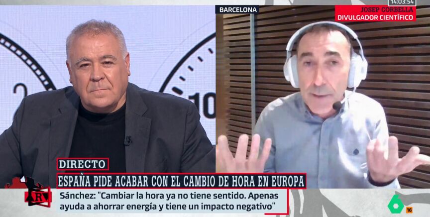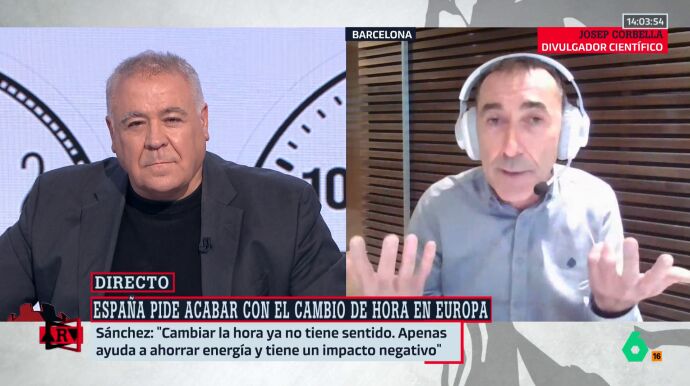 El divulgador científico Josep Corbella ha explicado en Al Rojo Vivo los posibles efectos del cambio de horario en la salud de la población española. "Para la gran mayoría de las personas, el impacto es insignificante y la adaptación resulta sencilla. Piense que adelantar o retrasar una hora el reloj es lo mismo que hacemos cuando viajamos a Canarias o regresamos", ha señalado.