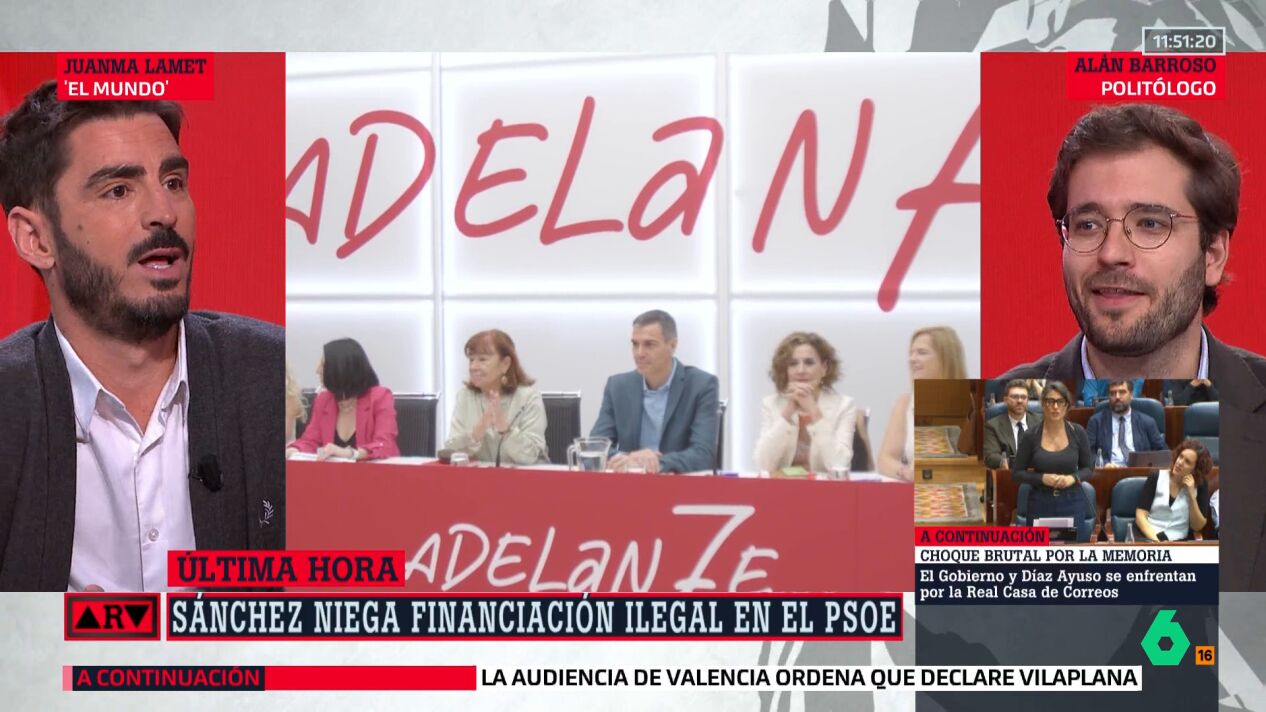 "Y eso, me dicen, lo tienen y por eso están tranquilos", señala Lamet. Aun así , "se contravino el código ético del PSOE de manera muy recurrente", remata el periodista. En el vídeo podemos ver al completo su intervención.