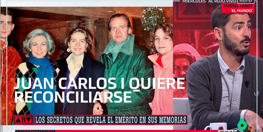 En Al Rojo Vivo, Juanma Lamet ha hablado sobre las memorias del rey emérito y las polémicas acusaciones que contiene, entre ellas las referidas a Letizia Ortiz, a quien se señala como un factor que no habría contribuido a la cohesión familiar. Sin embargo, para el periodista sucede justo lo contrario:"Letizia Ortiz es lo opuesto a Juan Carlos I y la demostración de que se pueden hacer las cosas de manera profesional y sin una concepción patrimonialista de la Corona".