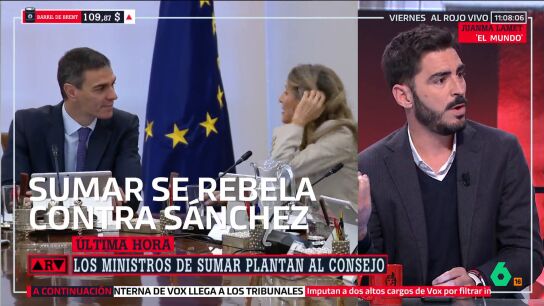 Juanma Lamet ha analizado en Al Rojo Vivo el nuevo choque entre Sumar y PSOE a cuenta de las medidas del Gobierno en materia de vivienda. El Consejo de Ministros extraordinario, convocado para aprobar un plan de respuesta integral ante la guerra en Irán, ni siquiera ha llegado a comenzar: los ministros de Sumar han decidido ausentarse en protesta por la exclusión de la moratoria de los alquileres y de medidas para limitar los márgenes empresariales en el decreto anticrisis.