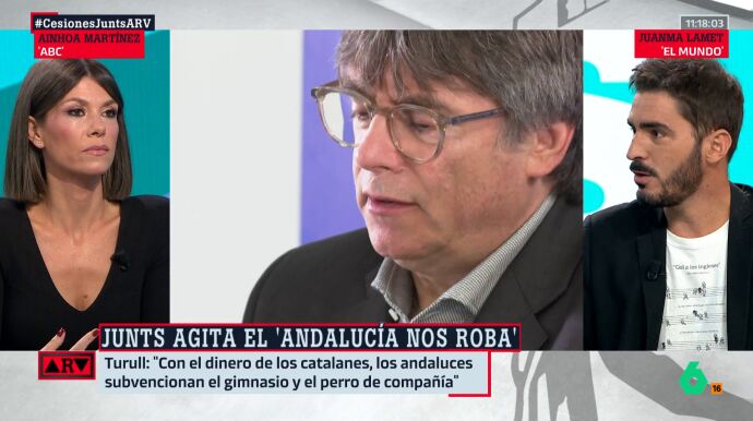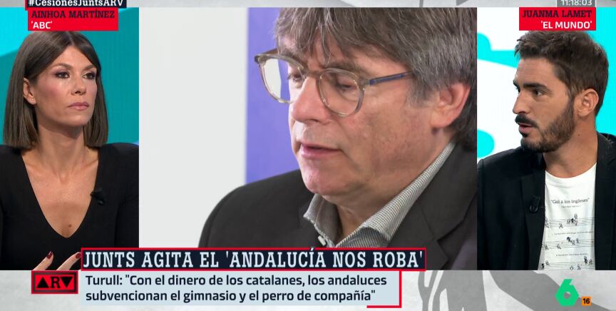 El periodista ha dicho que la tónica de 'Andalucía nos roba' ya la empezó Pujol en los 80, "la defendió Torra, lo piensa Puigdemont y lo verbaliza Turull". Ha explicado que la razón por la que los andaluces van a tener una exención fiscal para los gimnasios es "porque no tenemos el 27% de la deuda con el Gobierno como tiene Cataluña y la política económica andaluza ha permitido algo más de margen".