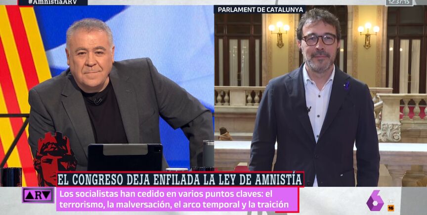 Ahondado en esta cuestión, el político ha asegurado que ese conflicto se ha dado porque "una mayoría de catalanes que gana las elecciones por mayoría absoluta presenta su proyecto en el Estado español" y este responde "con una represión" por la que acaba "gente en prisión, se encausa a centenares de personas y se obliga a que haya un president de la Generalitat en el exilio desde hace más de seis años", en referencia a Puigdemont. En este punto, Ferreras le recuerda que muchos catalanes no son partidarios de la independencia, por lo que sí ha habido un conflicto entre catalanes.