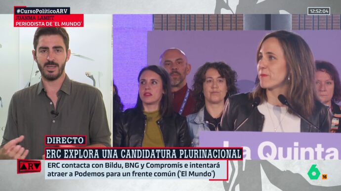Además, ha recordado que la relación de una parte de ERC con el Podemos de Pablo Iglesias e Irene Montero "no es la mejor". Pese a todo, cree que a medida que esté más cerca el periodo electoral, la unión "será más probable".