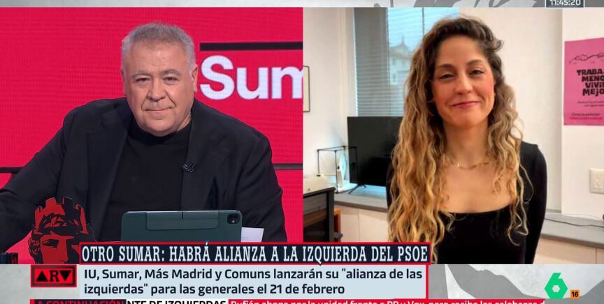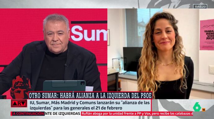 "Lo que hablamos es de poner en marcha ya un proyecto político transformador, ilusionante y abierto a toda la ciudadanía. Y ese proceso arranca el próximo 21 de febrero", confirma en Al Rojo Vivo, en una entrevista en directo, Lara Hernández, coordinadora del Movimiento Sumar.