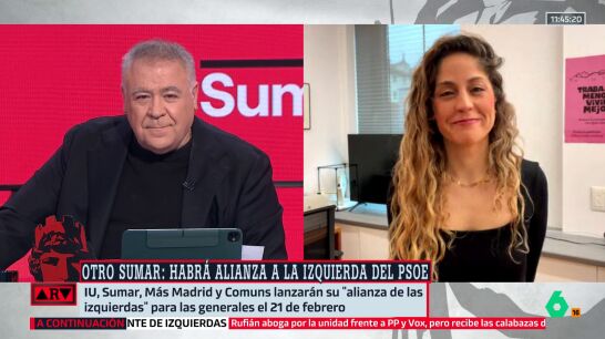 IU, Sumar, Más Madrid y Comunes lanzarán su alianza de izquierdas, de cara a las próximas elecciones generales, el 21 de febrero. Pero, ¿qué significa realmente esta unión? ¿De qué se trata? Lara Hernández, coordinadora del Movimiento Sumar, nos lo explica en Al Rojo Vivo.