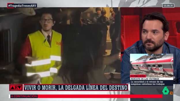 Desde el vagón, el paso del Alvia solo lo percibieron a través de la vibración, que duró unos veinte segundos. "Para nosotros, el Alvia siguió de largo. No teníamos idea de que estaba a 800 metros, caído en un barranco de cuatro metros", cuenta.