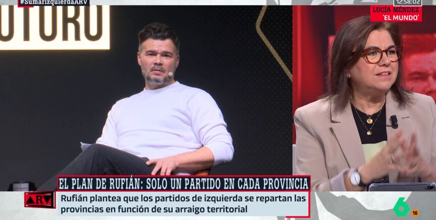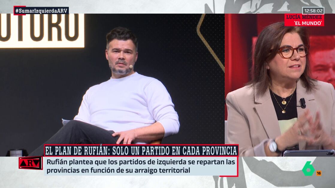 La periodista de El Mundo, Lucía Méndez, analiza el plan de Gabriel Rufián para unir a las izquierdas. Su mensaje es claro. En el vídeo, todos los detalles.