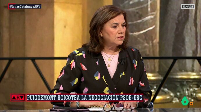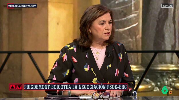 La periodista ha explicado que ERC es un partido que está "implosionando", asegurando que dentro no manda nadie. "Hay un movimiento clarísimo contra Junqueras", ha asegurado, destacando que con un partido en esta situación es difícil "la negociación".