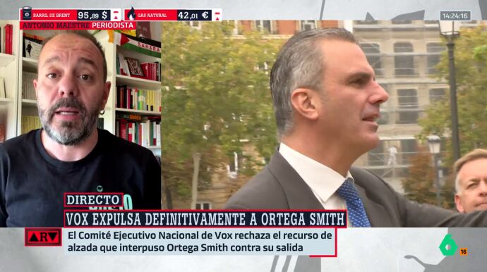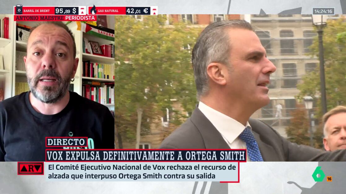 Antonio Maestre ha reaccionado en Al Rojo Vivo a esta noticia, indicando que Ortega Smith "cometió un error" cuando era secretario general del partido al crear una estructura de poder, en paralelo, "en contra de Abascal". "Desde ese momento estaba sentenciado", ha asegurado.