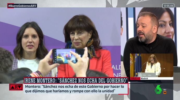 El periodista ha destacado que le parece que Irene Montero ha realizado una labor "fantástica como ministra". Sin embargo, cree que estas no son maneras de "sortearlo". Además, cree que el problema que ha tenido es que le han lastrado "las corrientes del aparato" y el intentar "buscar la confrontación con socios y adversarios".