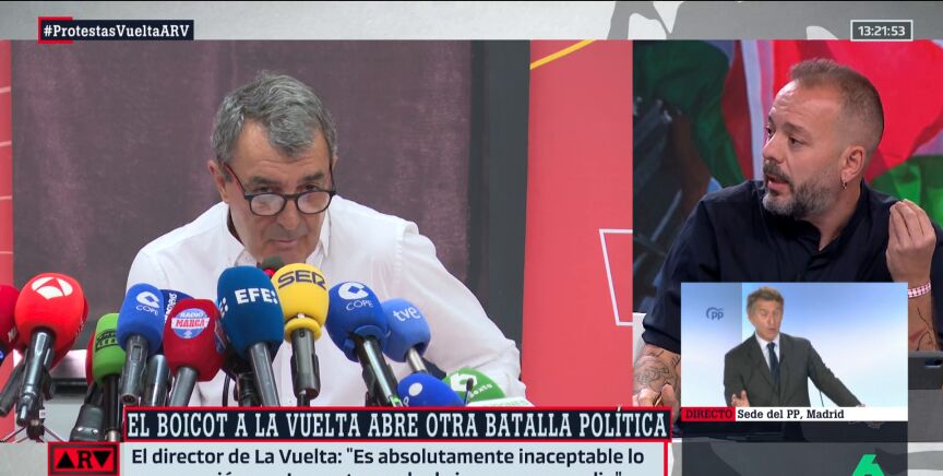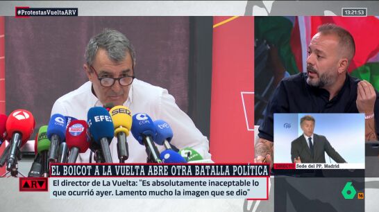 El periodista ha tachado a Guillén de "mentiroso", recordando que en una rueda de prensa ha dicho que a tres kilómetros de la meta tuvieron que parar porque los manifestantes "tiraron a a los ciclistas". Sin embargo, dos minutos después ha dicho que "hubo caídas en otros momentos de la etapa, pero no ayer".