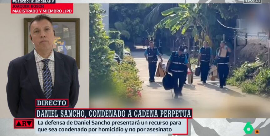 Daniel Sancho ha sido condenado a cadena perpetua por el asesinato de Edwin Arrieta en Tailandia, pero podría cumplir para de su condena en España. El magistrado Joaquim Bosch, miembro de Jueces y Juezas para la Democracia, explica que "hay un convenio de cooperación en materia de ejecuciones de sentencias penales, de 1983, entre Tailandia y España que permite que una parte de las condenas puedan cumplirse en nuestro país, pero establece al menos, dos condiciones". Según enumera Bosch: