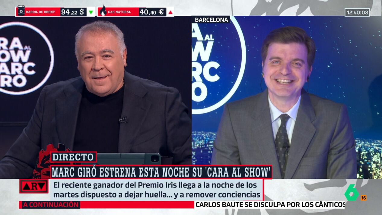 Para Marc Giró solo hay una estrella en laSexta: Antonio García Ferreras. Y así se lo ha hecho saber este martes el presentador de Cara al Show, quien estrena su nuevo programa hoy a las 23:00 horas.