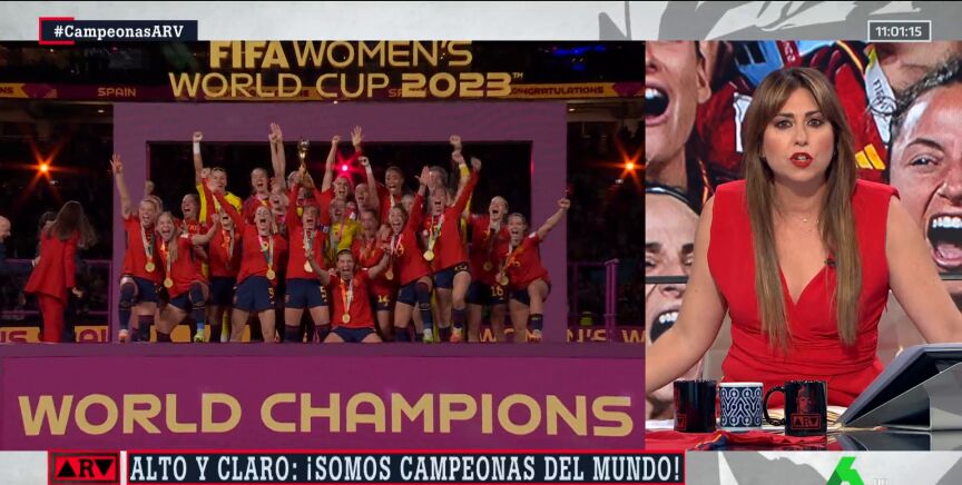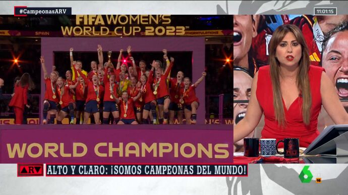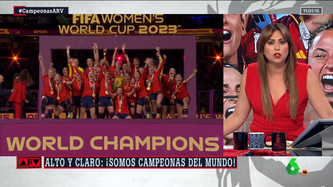 "Hay muchas maneras de hacer historia, acabáis de ver una de ellas", ha indicado la presentadora, celebrando que somos campeonas del mundo. "Lo somos un poco todas porque esta proeza va más allá del fútbol y traerse el trofeo más preciado a casa, va de que esas 23 mujeres se convierten en un espejo, un referente", ha asegurado.