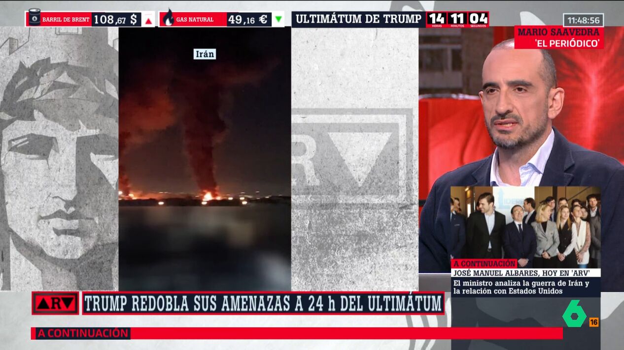 El periodista Mario Saavedra analiza en este vídeo las últimas amenazas de Trump: si Irán no cede, si no se rinde y no abre el estrecho de Ormuz, va a arrasar puentes, centrales energéticas, e incluso amenaza con atacar objetivos civiles.