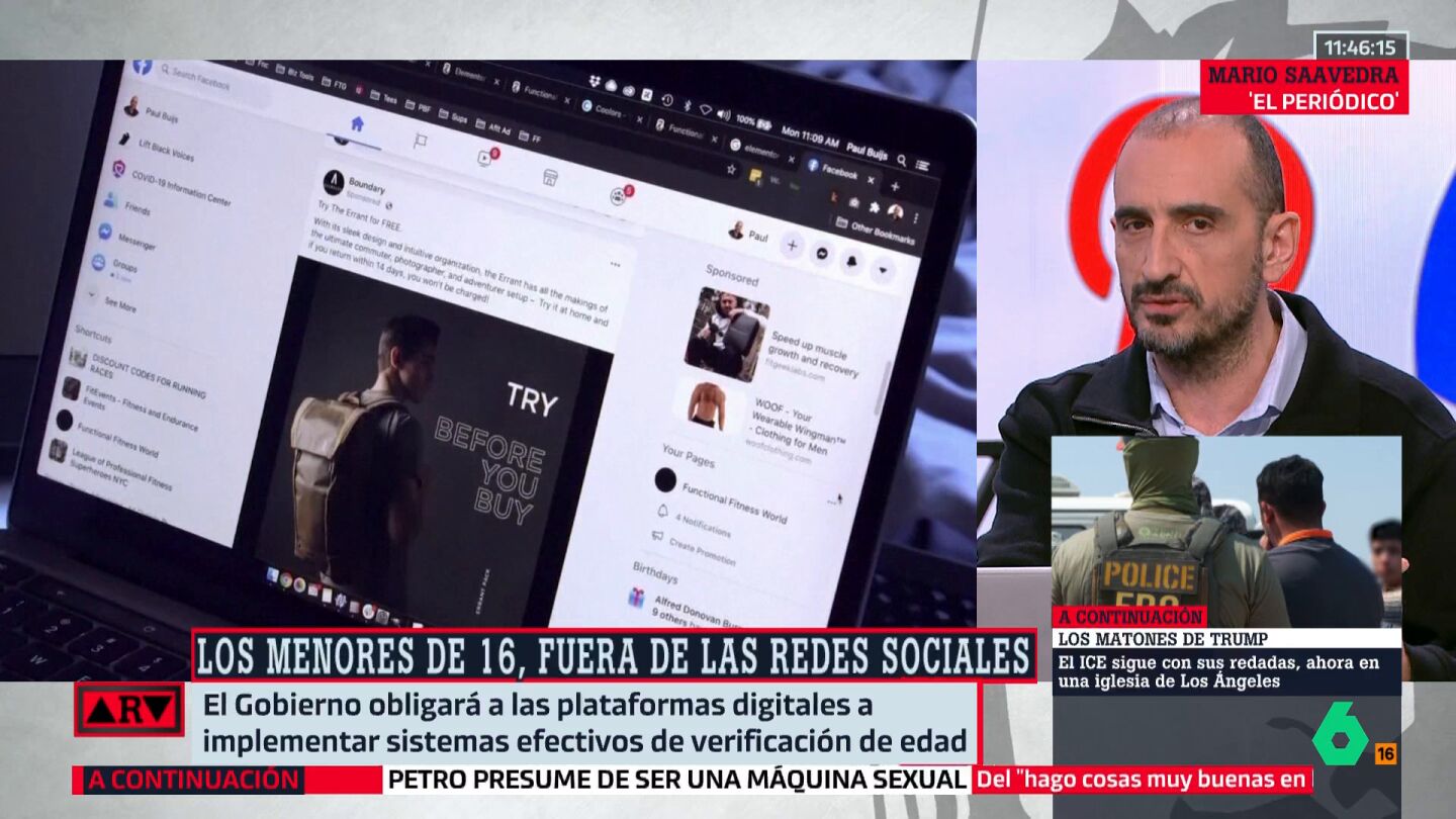 El periodista Mario Saavedra reacciona al último anuncio del presidente del Gobierno de prohibir el acceso a los menores de 16 años a las redes sociales. Habrá incluso responsabilidad penal por algoritmos manipulados o por contenido sexualizado de IA.