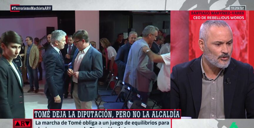 Santiago Martínez-Vares, CEO de Rebellious Words, analiza en el plató de Al Rojo Vivo las denuncias de acoso sexual dentro del PSOE: "Sin las mujeres feministas del PSOE, que han dado batalla, hubiera sido muy distinto". Además, Martínez-Vares critica que "Pedro Sánchez ha amparado y silenciado los comportamientos de Paco Salazar": "Cinco meses han tapando a Paco Salazar, cinco meses en los que, hasta ahora, el portavoz del Gobierno se reunía con el acosador para buscarle trabajo".