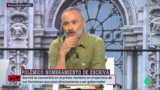 El asesor reacciona al nombramiento de Escrivá como gobernador del Banco de España, confesando que le parece "grotesco" que Sánchez hable de regeneración democrática cuando "no para de ocupar las instituciones".