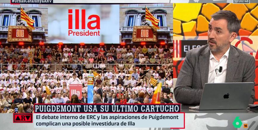 El periodista Ignacio Escolar asegura, tres días después de que conociéramos los resultados electorales de Cataluña en las que por primera vez en 40 años, los partidos independentistas no suman, que "lo más probable es que Illa sea president de la Generalitat", asegura. Pese a que Carles Puigdemont haya anunciado su candidatura a la investidura.