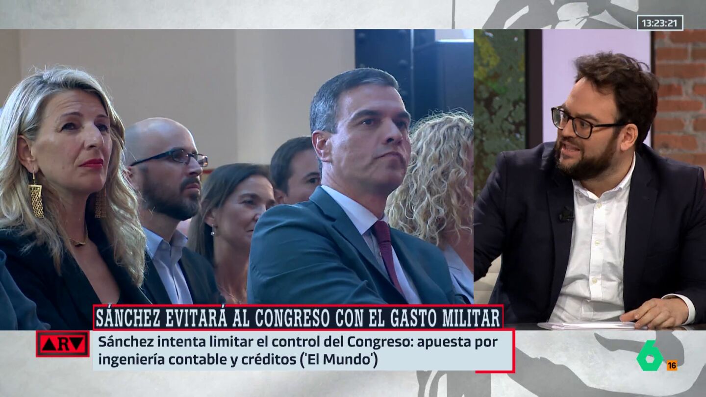 José Luis Monrosi, periodista de elDiario.es, analiza en Al Rojo Vivo el conflicto dentro del gobierno español sobre el aumento del gasto en defensa, centrándose especialmente en la postura de la izquierda antibélica que se opone a esta medida.