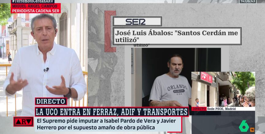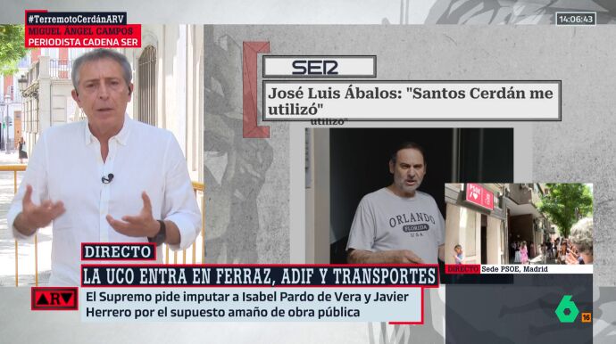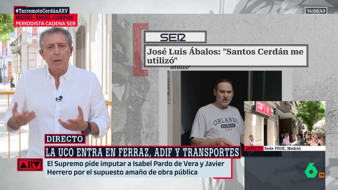 El periodista Miguel Ángel Campos entrevistó para la Cadena SER a José Luis Ábalos, quien le confesó entre otras cosas que se sentía engañado por Santos Cerdán y Koldo, sentirse una "víctima" y "el imbécil de todo esto".