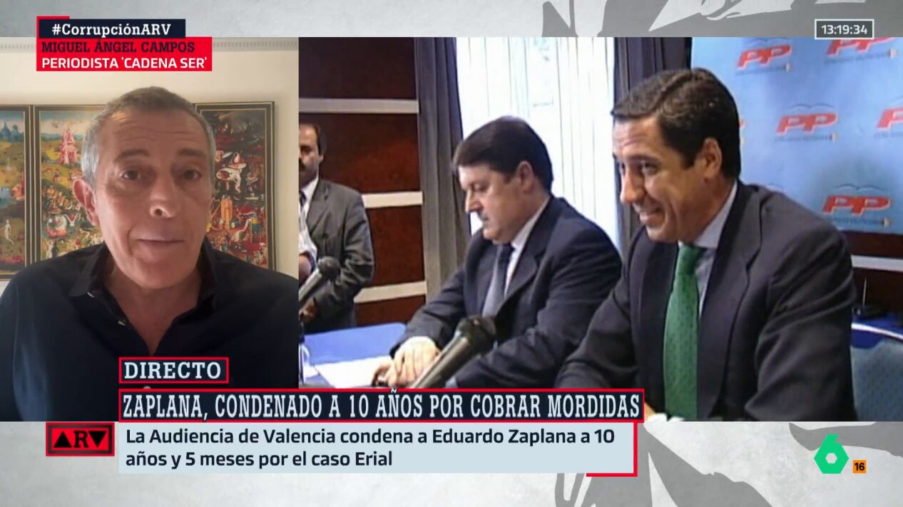 Porque -tal como afirma Campos- "lo que dice la sentencia es que Zaplana fue corrupto al poco de llegar a la Generalitat Valenciana, prácticamente al año, en 1997, y concluye su actividad corrupta cuando sale de sus actividades políticas. Primero en la Generalitat y luego, en el Gobierno de España en 2008".
