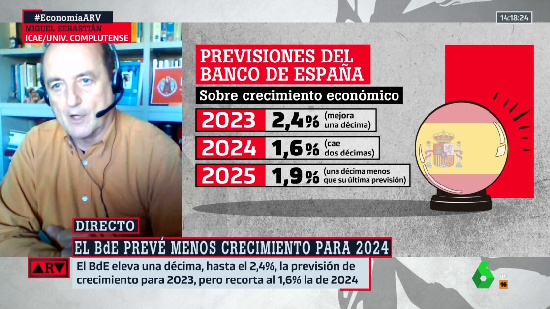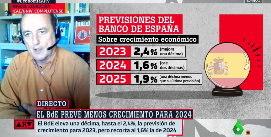 Según explica el economista Miguel Sebastián , para este año que viene, 2024, "con un crecimiento de 1,6%, según las previsiones del Banco de España, se va a seguir creando empleo y vamos a seguir siendo de las economías que más crecen en Europa", afirma en Al Rojo Vivo.