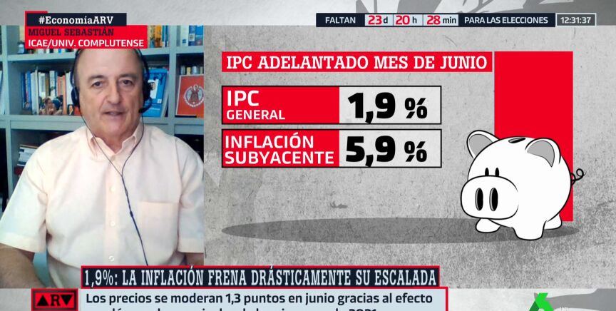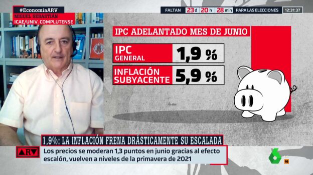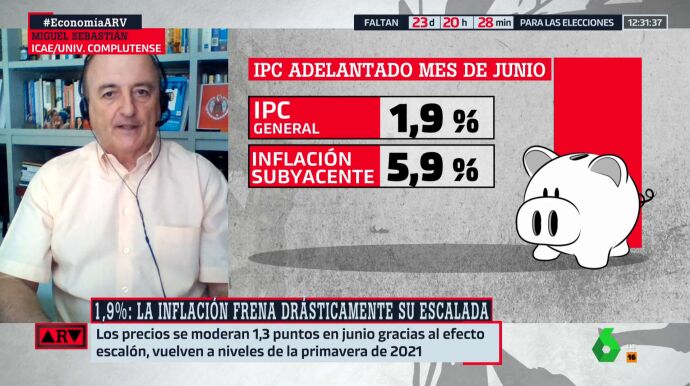 El dato adelantado del IPC de junio sitúa la inflación en el 1,9%. Miguel Sebastián reconoce que es una noticia "magnífica", asegurando que ahora "vamos a tener tres meses buenos", aunque a finales de año "rebotará".