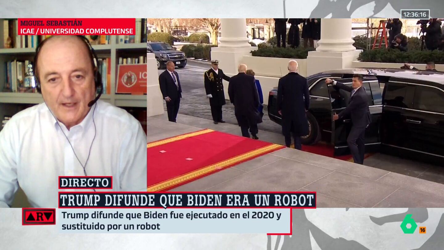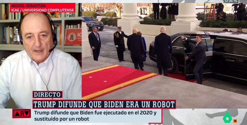 Ante semejante delirio, el profesor Miguel Sebastián ha ironizado en Al Rojo Vivo: "Es contradictorio con el sentimiento patriótico estadounidense, porque si uno se pone a fabricar robots, lo lógico es que quiera hacerlos bien. Y no parece que el último Biden que hemos visto haya sido un robot especialmente bien diseñado: se trababa en los debates y apenas podía moverse".