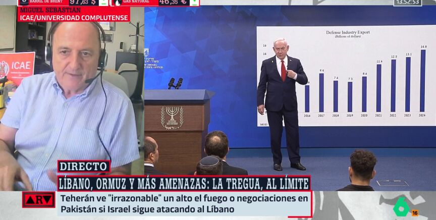 Por su parte, el profesor de Economía, Miguel Sebastián, explica que "Israel quiere desacoplar el conflicto o la guerra del Líbano, que es su guerra, del conflicto del Golfo Pérsico, Irán. Ormuz... para hacer lo que le dé la gana en Líbano, como hizo en Gaza, sin que afecte a los mercados ni al petróleo, ni a las Bolsas, ni al gas, ni nada, que fue lo que ocurrió en Gaza".