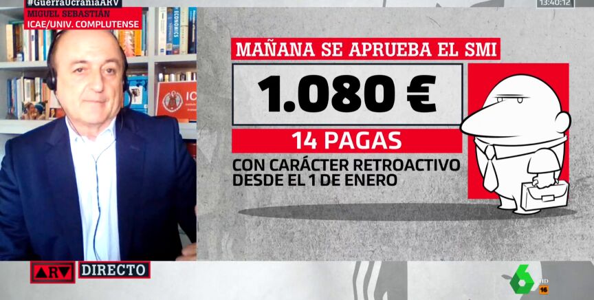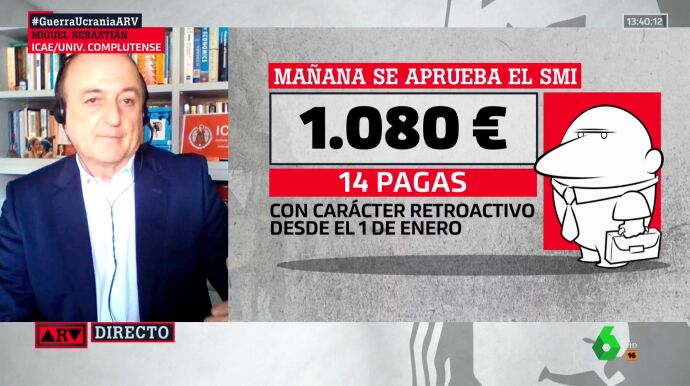 Miguel Sebastián cree que la subida del salario mínimo"este año sí que está justificada" para "proteger a los más vulnerables", pero abre otro debate: "Aquí lo importante es que empecemos a ver si debe haber el mismo salario mínimo para jóvenes y no jóvenes y para zonas rurales o zonas urbanas", plantea en ARV, donde señala que "es un debate viejo pero no acabamos de entrar en el fondo del asunto".