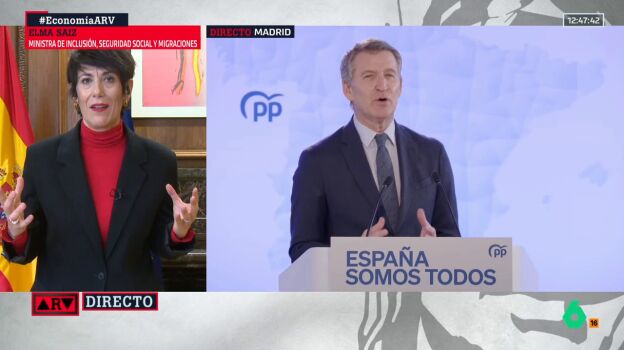 La ministra de Inclusión, Seguridad Social y Migraciones, Elma Saiz, ha acusado este lunes al Partido Popular de llevar a cabo una "oposición sucia" que "mancha los procedimientos judiciales". En una entrevista en Al Rojo Vivo, la ministra ha asegurado que "no hay" un acuerdo entre el PSOE y el exministro de Transportes José Luis Ábalos para no 'hacerse daño' en los juzgados por el caso Koldo.
