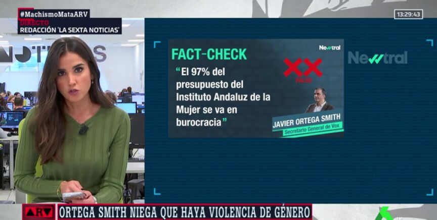 "El 97% del presupuesto del Instituto Andaluz de la Mujer se va en burocracia", aseguró Javier Ortega Smith. Esta declaración se trata de una información falsa, como así lo ha demostrado Newtral.es, que ha desmontado este bulo.