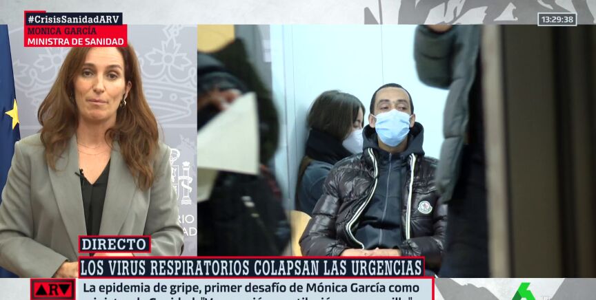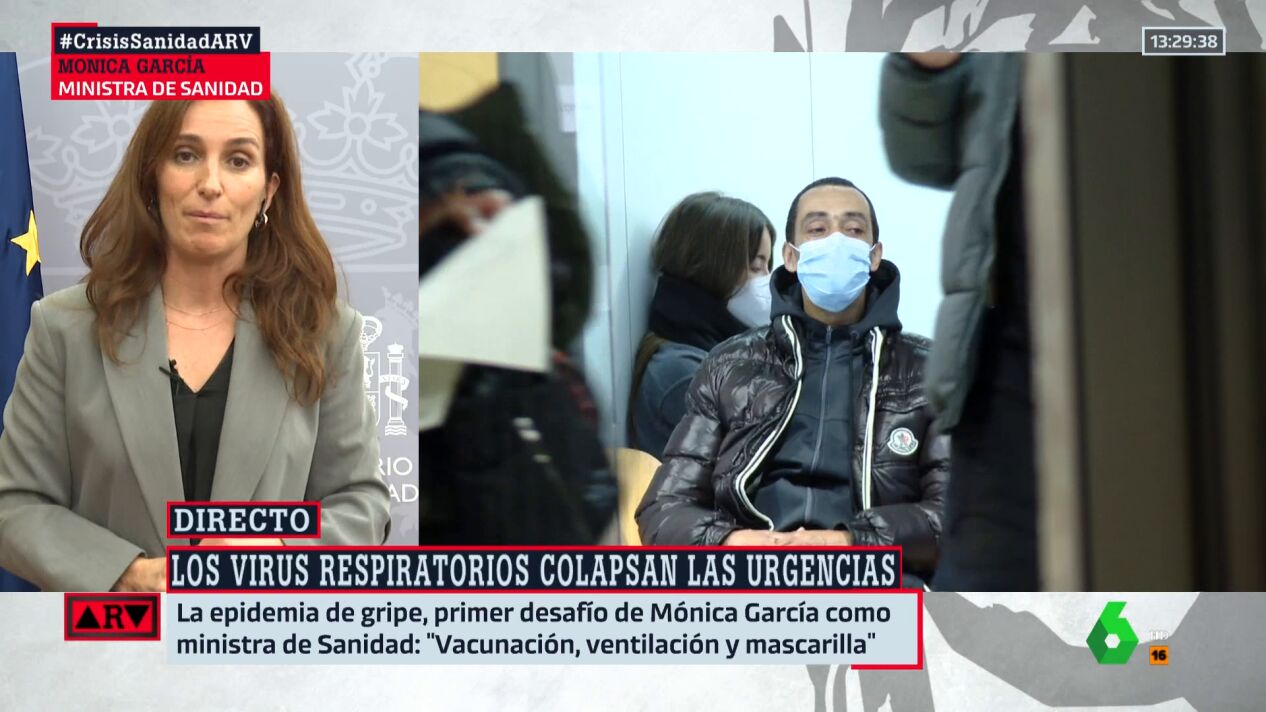 La ministra de Sanidad, Mónica García, ha recomendado el uso de mascarilla y ha instado a la población a vacunarse ante la tripledemia de gripe, COVID y bronquiolitis que está disparando la incidencia de estas enfermedades en España.