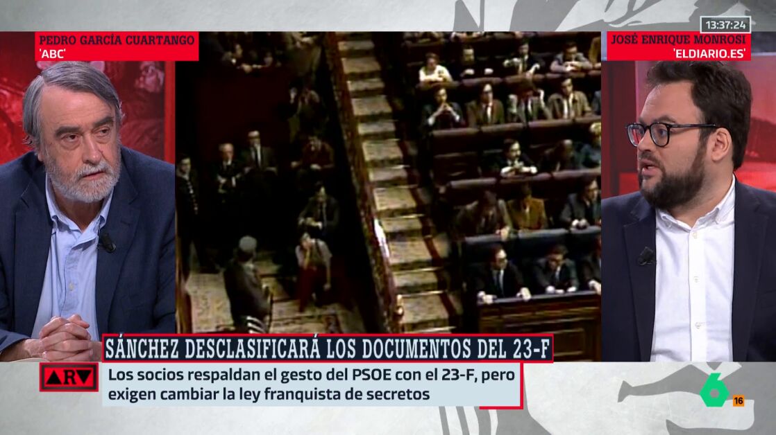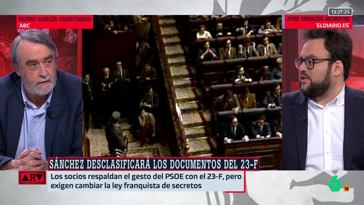 Minutos después de que Pedro Sánchez anunciase que este miércoles se desclasificarán los documentos del 23F "para saldar una deuda histórica con la ciudadanía", el periodista José Enrique Monrosi, de elDiario.es, reflexiona sobre esto en Al Rojo Vivo.
