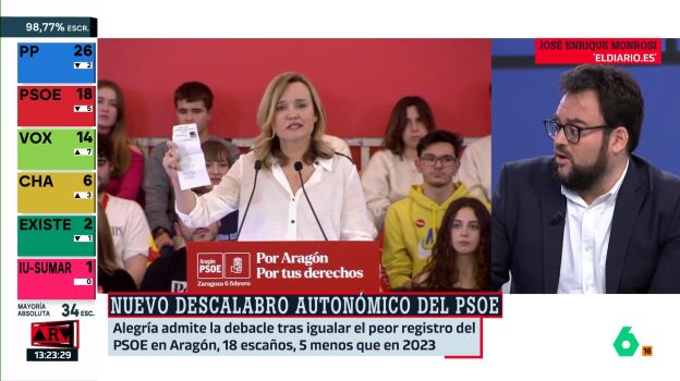 El PSOE ha igualado el peor resultado en Aragón con 18 escaños. Nada más conocer los resultados, Pilar Alegría hizo autocrítica con "mal resultado" y aseguró que trabajarán para volver más fuertes. El periodista José Enrique Monrosi, de elDiario.es, explica esta táctica de Pedro Sánchez, que muchos critican o no entienden, de colocar a ministros en las autonomías. Y son dos las claves.