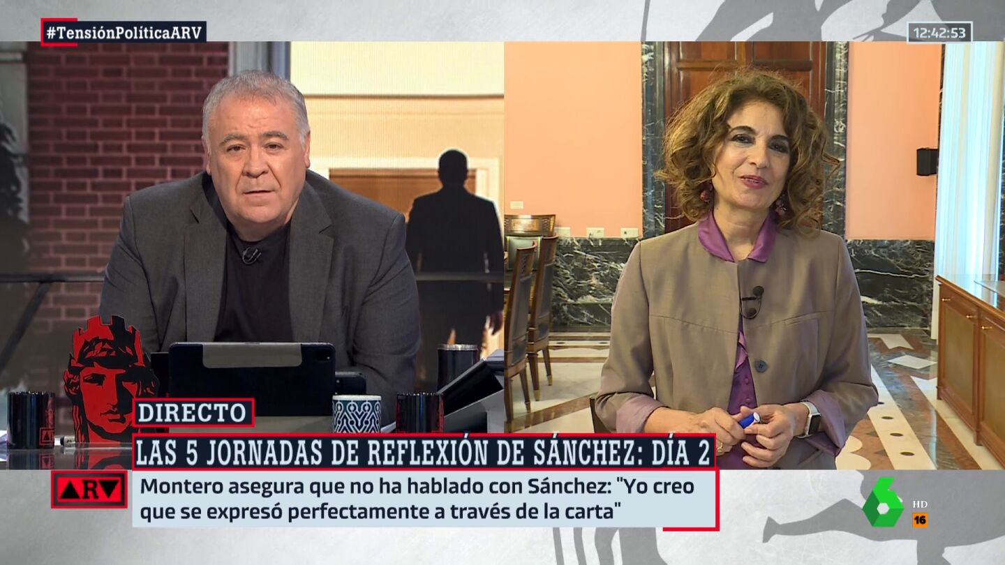 A preguntas de Antonio García Ferreras, la 'número dos' del PSOE reconoce que no ha hablado con él en las últimas horas y aboga por respetar el periodo de reflexión del presidente, que en su carta a la ciudadanía se daba de plazo hasta el lunes para dar a conocer su determinación. "Hay que dejarlo que reflexione, porque su reflexión es exclusivamente personal", defiende.