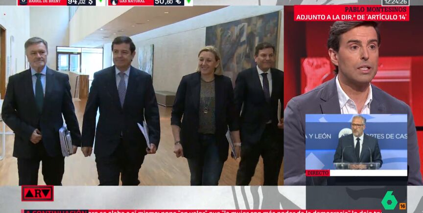 Pablo Montesinos, periodista y adjunto a la directora de 'Artículo 14', ha analizado la situación política en Castilla y León. En concreto, se ha referido a Alfonso Fernández Mañueco, quien ha iniciado este miércoles una ronda de negociaciones con Vox para facilitar su investidura como presidente de la Junta. Al resto de fuerzas con representación parlamentaria las ha citado para el jueves.