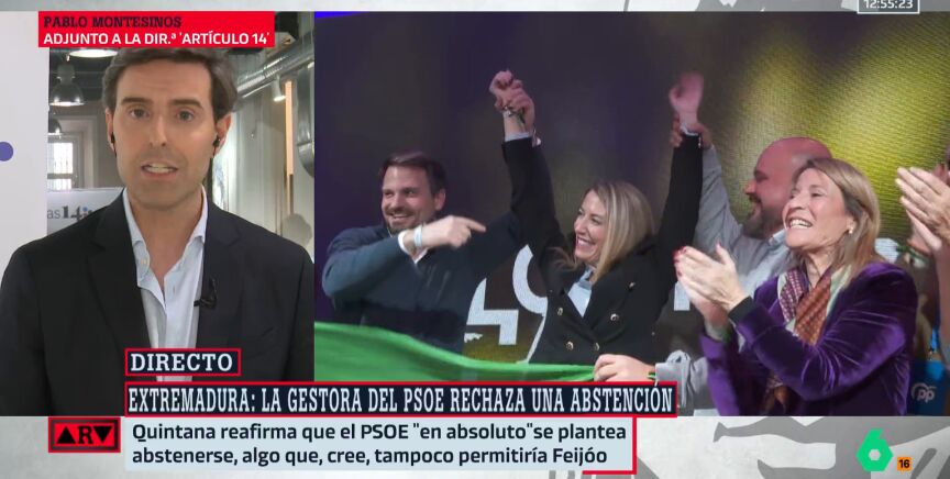 El periodista Pablo Montesinos nos da algunas claves sobre cómo están los ánimos entre los 'populares' extremeños con respecto a las negociaciones con el partido ultra. En el vídeo, toda su información.