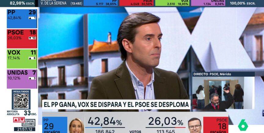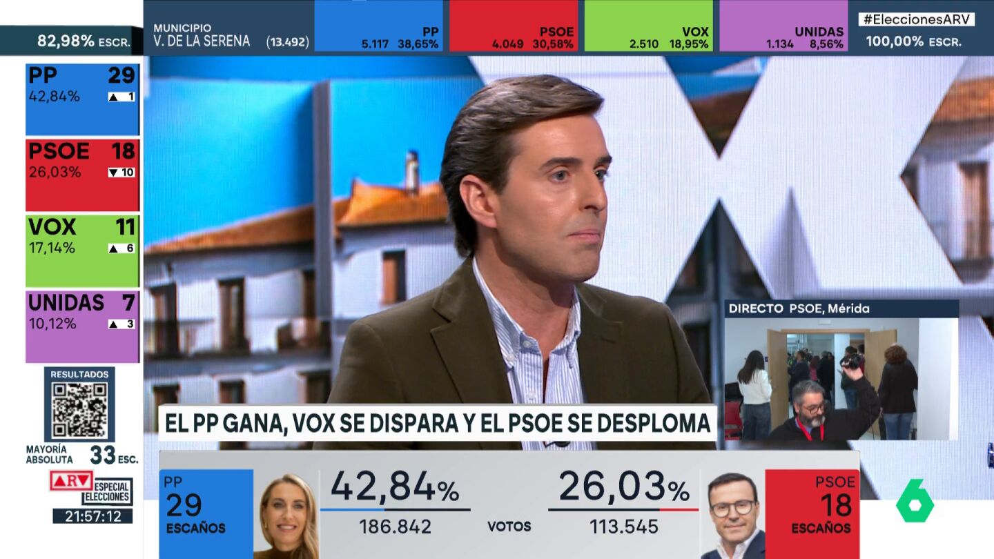 El periodista ha indicado en Al Rojo Vivo que "Vox está muy fuerte y hay preocupación entre los barones territoriales y destacados miembros del PP con esa subida tan fuerte". En las filas del PP temen que Vox pueda complicarles "la negociación que está por venir" para formar Gobierno en Extremadura.