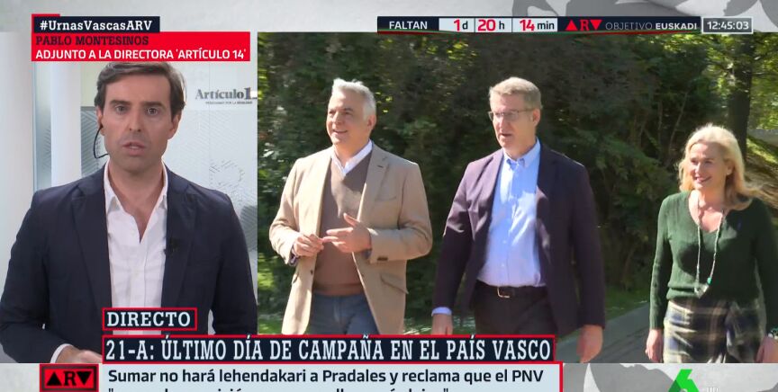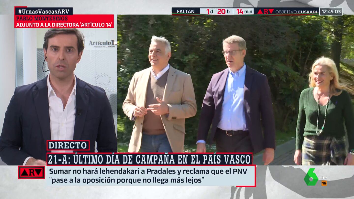 El adjunto a la directora de 'Artículo 14' señala asimismo que los 'populares' "reconocen en privado que van a mejorar el resultado electoral", pero también "admiten con los últimos tracking en la mano" que ese ascenso "no se traduce en una gran elevada de escaños". De ahí, apunta Montesinos, "ese debate interno" cuya existencia le confirman fuentes del PP vasco.
