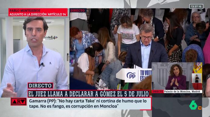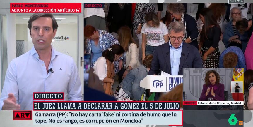 Y esa consigna no es otra de la de cerrar filas porque "hay que ganar sí o sí estas elecciones del próximo domingo", apunta el periodista, que añade además que desde el PP creen que el caso de Begoña Gómez les va a ayudar a ganar "con claridad". En el vídeo podemos ver al completa la información que ofrece en Al Rojo Vivo Pablo Montesinos sobre los populares.