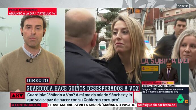 Según explica en directo para Al Rojo Vivo, el periodista Pablo Montesinos, adjunto a la directora de Artículo 14, "la dirección nacional del partido (PP), en esa interlocución con Guardiola, ya le ha advertido de que tiene que intentar reconducir las relaciones con Vox para evitar esa repetición electoral".