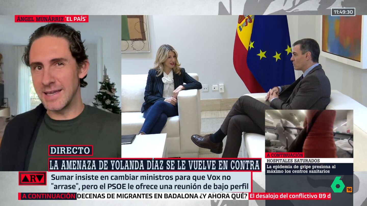 Ángel Munárriz, periodista 'El País', analiza las palabras de Sumar a Pedro Sánchez de reformar el Gobierno de arriba a abajó, tal como expresó la vicepresidenta segunda y ministra de Trabajo, Yolanda Díaz, en Al Rojo Vivo.