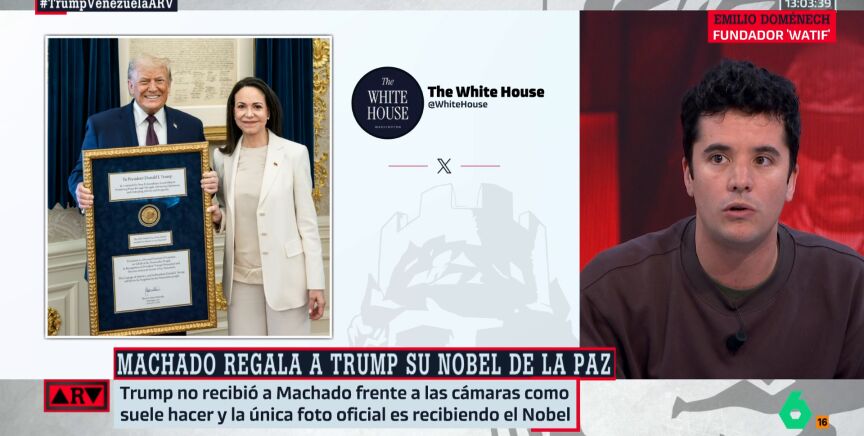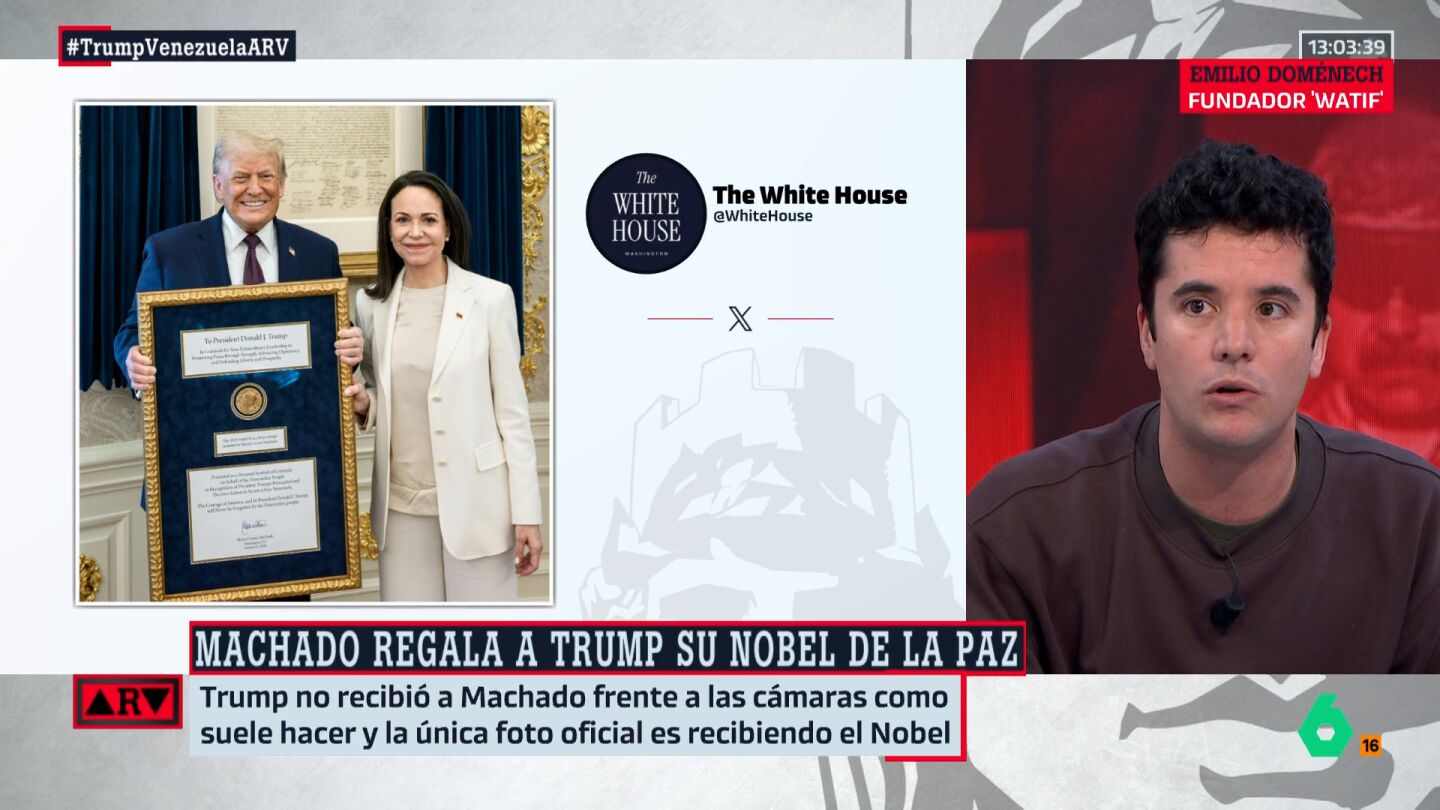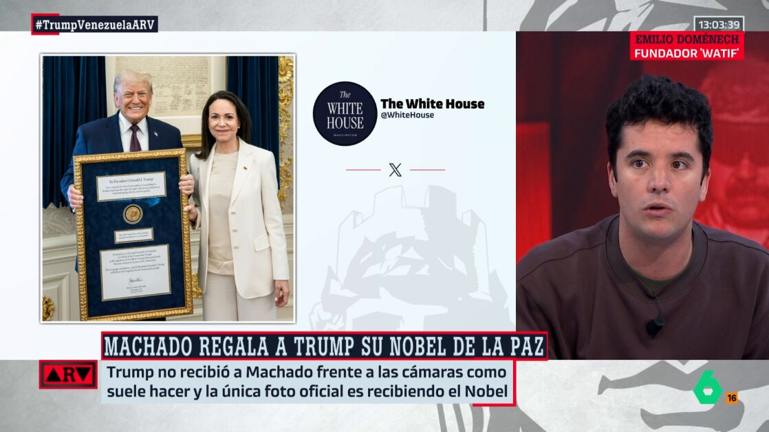 "María Corina Machado ha demostrado ser muy vulnerable en este caso, humillándose ante Trump dándole ese premio Nobel, y Trump lo que hace es aprovecharse más de esa posición vulnerable y le va a decir: 'Lo siento, ahora mismo, tengo un Gobierno títere en Venezuela que va a hacer todo lo que yo quiera'. Principalmente, el petróleo", concluye Doménech.
