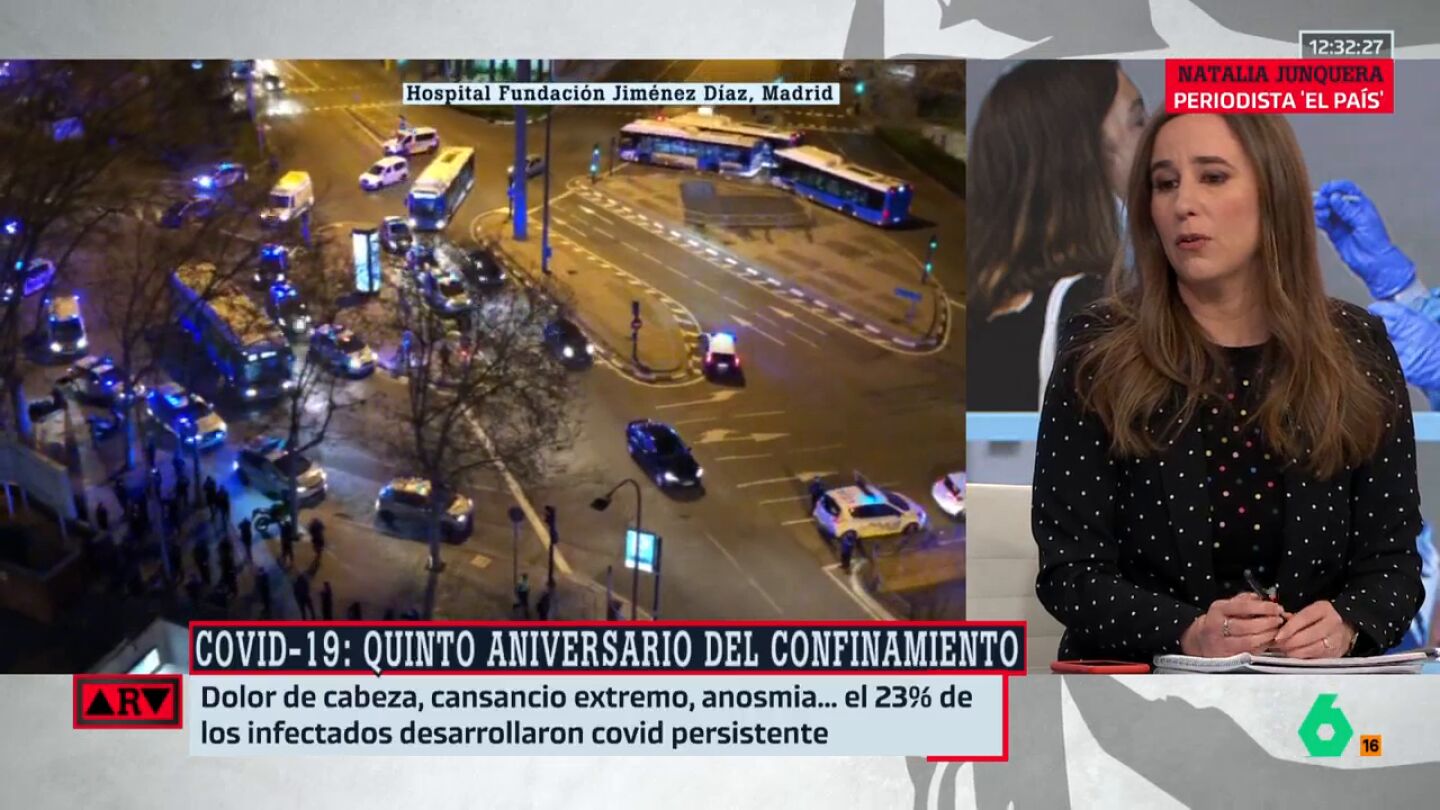 Este 14 de marzo de 2024 se cumplen cinco años del estado de alarma en España por la pandemia de COVID-19 que se cobró la vida de 121.000 personas, y 7 millones en el mundo. Natalia Junquera, periodista de El País, señala hoy que de esa época "hay muchas cosas de las que estar orgullos, sobre todo, del papel de los médicos y sanitarios que se jugaban la vida sin medios, al principio, con bolsas de basura".