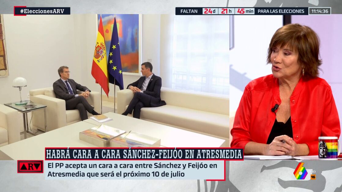 La periodista ha explicado que este encuentro será "muy excepcional" porque se enfrentarán "los únicos posibles candidatos a la presidencia del Gobierno, y las fuerzas están muy divididas". Además, ha asegurado que si Pedro Sánchez actúa como lo hizo en 'El Hormiguero', "va a arrasar".